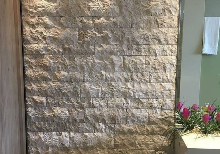 Nossos pisos de travertino bege Bahia são duráveis e elegantes, adequados para qualquer ambiente.